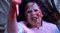 Few scenes are as disturbing as when the young possessed Regan mutilates herself while masturbating with a crucifix…in front of her Mom….and then wipes the blood on her Mother’s face. Yeesh.